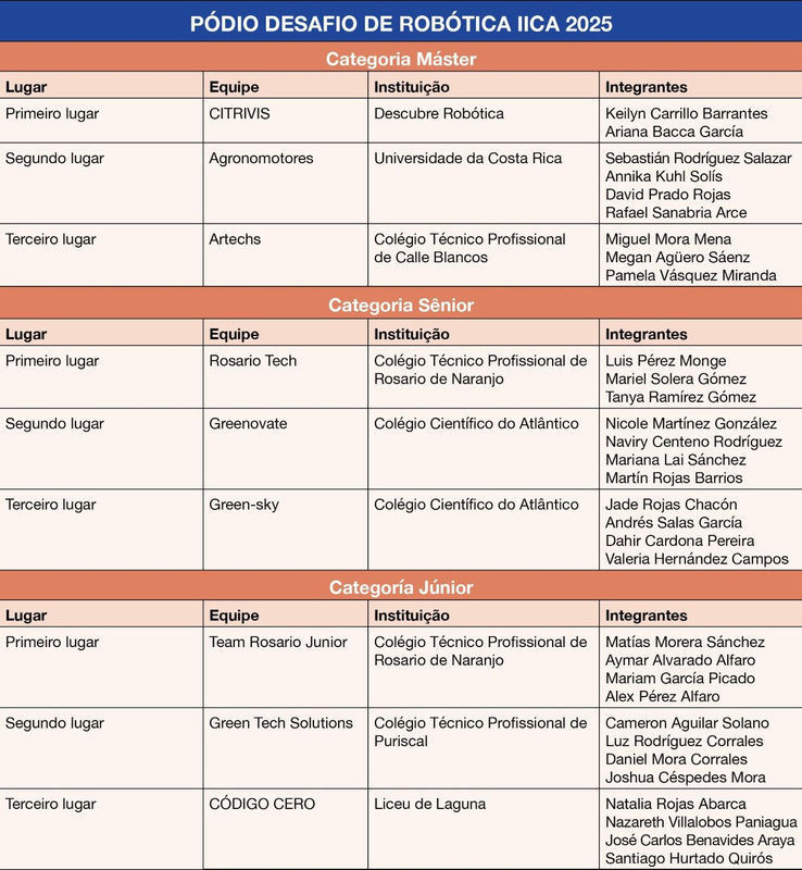 Mais de uma centena de estudantes de ensino médio e da Universidade da Costa Rica participaram no Desafio de Robótica na Agricultura IICA 2025, iniciativa do Instituto Interamericano de Cooperação para a Agricultura (IICA) que procurou fomentar a criatividade, o aprendizado prático e a inovação tecnológica nos jovens, por meio do desenvolvimento de soluções que visam impulsionar a sustentabilidade e a produtividade no setor agroalimentar.