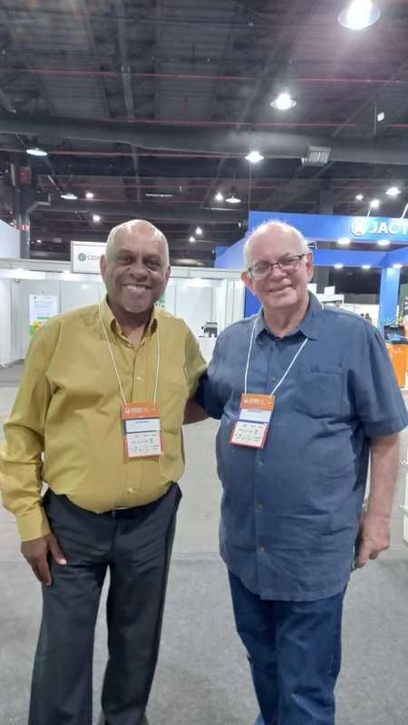 O jornalista Lauro Goimes da RF e o pesquisador e Dr. Aires Ventura do Incaper do Espírito Santo no XXIX CBF em Campinas/SP