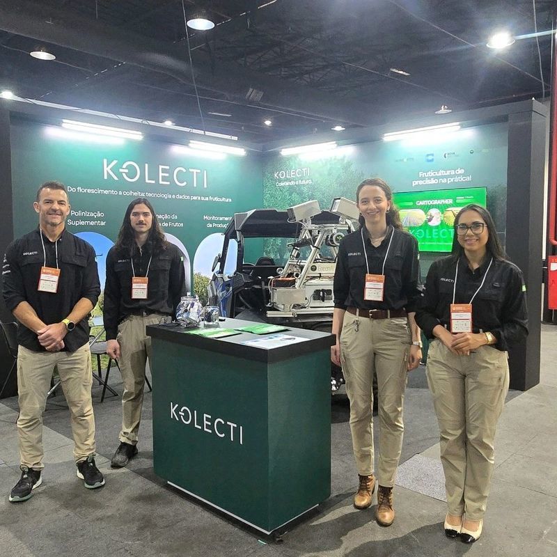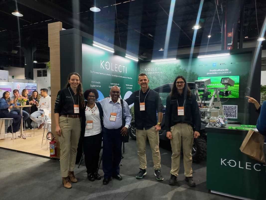 Equipe da Kolecti no XXIX CBF 2025 em Campinas/SP: Julio, Vitor, Andreza e Juliana, apresentaram as novas tecnologias de gerenciamento de pomares e videiras aos produtores e congressistas no evento