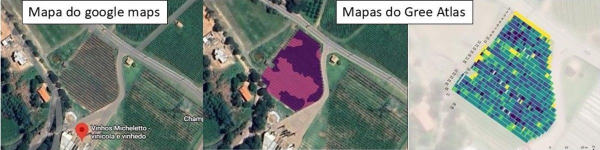 Em Louveira/SP, o dia de campo foi realizado em parceria com o XXIX Congresso Brasileiro de Fruticultura. Daniel Micheletto, proprietário da vinícola, foi quem recebeu os participantes, demonstrou a safra de inverno que estava prestes a ser colhida e nesta mesma área foi realizado o escaneamento com a tecnologia Green Atlas que deram origem aos mapas e também apresentados no Dia de Campo.