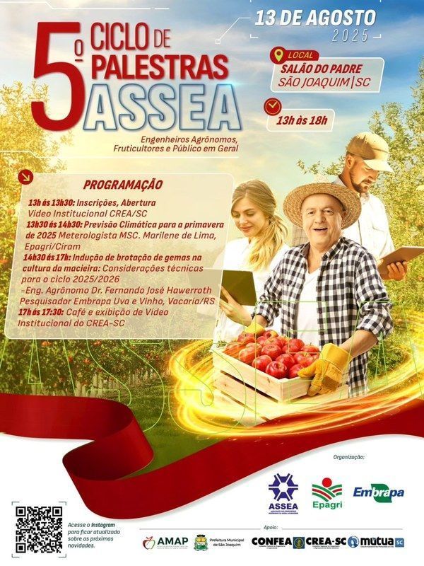 5º Ciclo de Palestras ASSEA - 13 de Agosto de 2025 - São Joaquim/SC - https://docs.google.com/forms/d/e/1FAIpQLSdBhoOS4Vmo4GYas7K8gzNM84QLA7uze8mkf6h7x8kBYdR4Lg/viewform