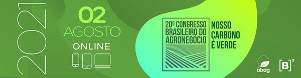 Um dos mais relevantes eventos do universo agro do país será promovido nesta segunda-feira, dia 2 de agosto, a partir das 9 horas. O 20º Congresso Brasileiro do Agronegócio, uma realização da Associação Brasileira do Agronegócio (ABAG), em parceria com a B3, A Bolsa do Brasil, debaterá o tema "Nosso Carbono é Verde" e reunirá de forma virtual toda a cadeia produtiva. Já são mais de 10 mil inscritos do Brasil e do exterior, que acompanharão a transmissão por meio do site oficial.