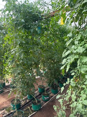 O vaso utilizado deve ser com furinhos ou com sistema próprio de drenagem. Além disso, a planta precisa de terra vegetal rica em matéria orgânica e minerais. Quando seu pé de tomate apresentar três pares de folhas, pode seguir para a próxima etapa.