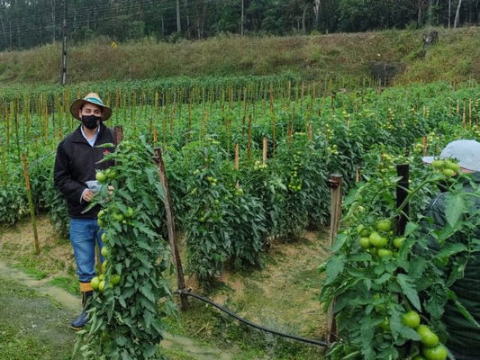 O desempenho do tomate SCS 375 Kaiçara, desenvolvido pela Epagri, foi a grande atração em um dia de campo realizado em Apiúna (SC). Em uma área demonstrativa instalada na propriedade do agricultor Imor Bohmann, os participantes verificaram que o cultivar da Epagri pode render até 7kg de frutos por planta. "Ele apresentou excelente qualidade vegetativa e produtiva, com frutos médios e alta carga de frutos por pé. Também se destacou pela resistência a viroses, com menor ocorrência de mosca branca", conta o pesquisador Rafael Morales, da Epagri/Estação Experimental da Itajaí, empresa do Governo do Estado. A produtividade média de uma planta de tomate é de cerca de 5kg de frutos, dependendo do sistema de cultivo.
