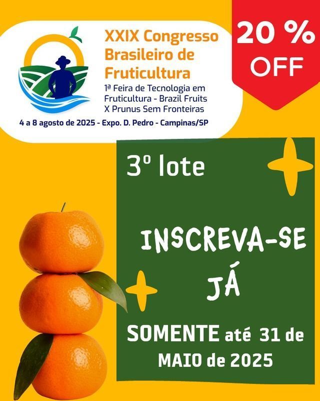 Como garantir sua vaga: Os ingressos do 3° estarão disponíveis até o dia 31 de maio de 2025 e a venda é limitada. Para garantir sua vaga, acesse o site do evento e efetue sua inscrição! Link na Bio! www.cbfruticultura.com.br