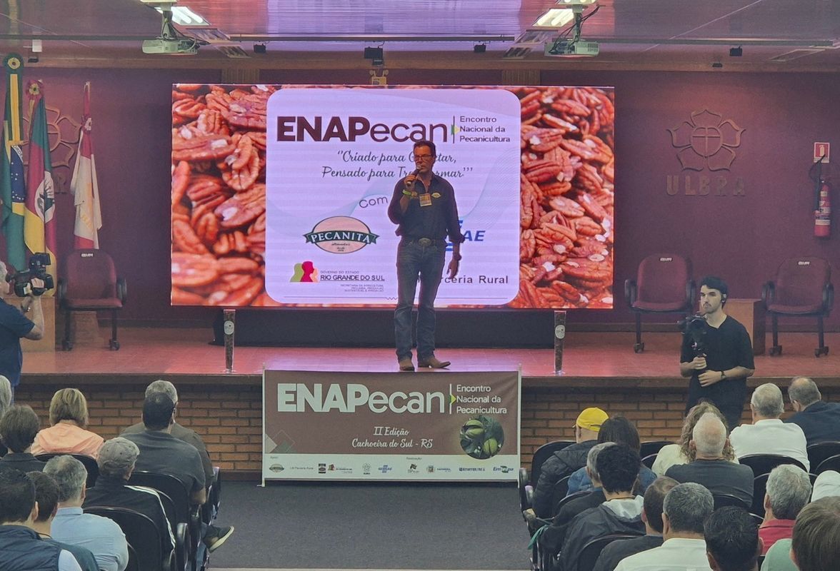 ENAPecan inicia com debates sobre inovação e expansão da cadeia da noz-pecã no Brasil - Evento em Cachoeira do Sul (RS) reúne produtores, pesquisadores e instituições para discutir desafios, avanços tecnológicos e oportunidades de mercado da pecanicultura - Começou na quinta-feira, 6 de novembro, o II Encontro Nacional da Pecanicultura (ENAPecan) no campus da Ulbra, em Cachoeira do Sul (RS). O objetivo é debater a inovação, sustentabilidade e o potencial da cadeia produtiva da noz-pecã no Brasil. O ENAPecan é o maior encontro nacional dedicado à cultura da noz-pecã e reúne produtores, pesquisadores, técnicos e empresas do setor para troca de experiências e discussões de avanços.