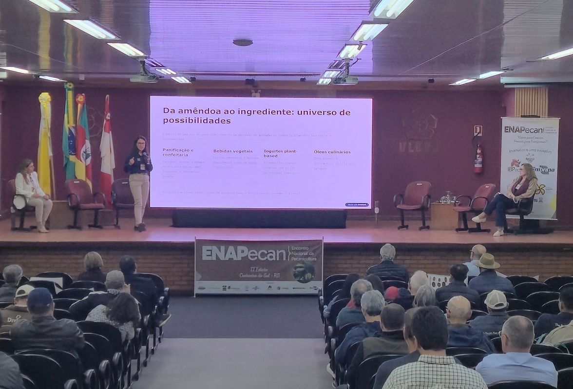 Inovações tecnológicas impulsionam encerramento do ENAPecan em Cachoeira do Sul - Palestras destacaram estratégias internacionais de valorização da noz-pecã, potencial industrial brasileiro e experiências do Uruguai e México com cultivares - O segundo Encontro Nacional da Pecanicultura (ENAPecan), sediado no campus da Ulbra, em Cachoeira do Sul (RS), encerrou nesta sexta-feira, 7 de novembro, abordando as "Inovações na pecanicultura brasileira". A mediação foi da vice-presidente do Instituto Brasileiro de Pecanicultores (IBPecan), Maria Tereza de Carli. A palestra iniciou com o engenheiro mecânico Arsenio González, porta-voz do Conselho Mexicano da Noz - Comenuez, que abordou a questão da "Valorização da noz -pecã no mercado interno: Experiência do México".
