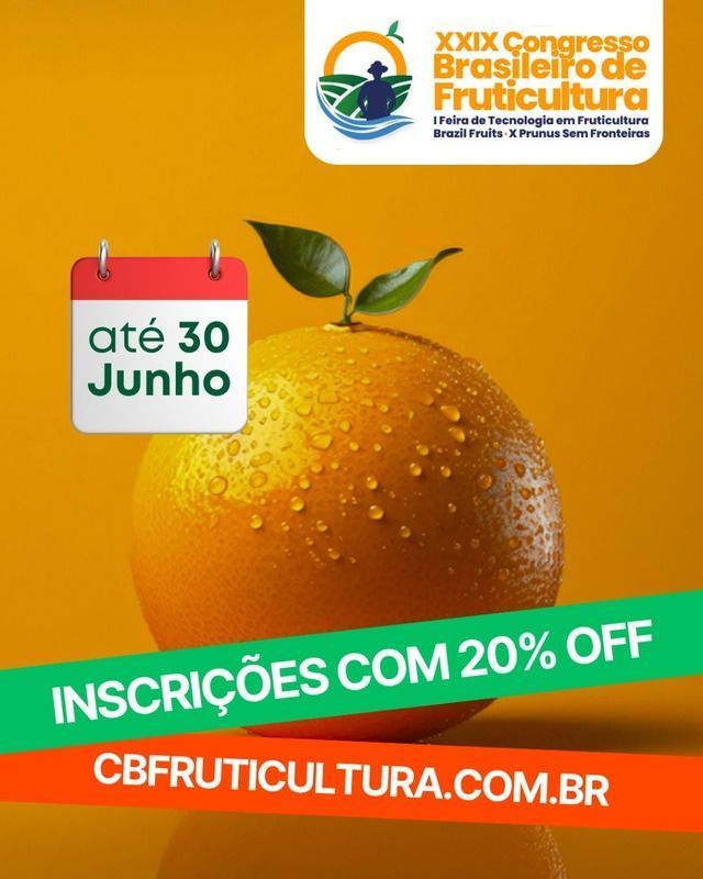 O lote promocional foi prorrogado até 30/06 - aproveite 20% de desconto para garantir sua vaga no 29º Congresso Brasileiro de Fruticultura!