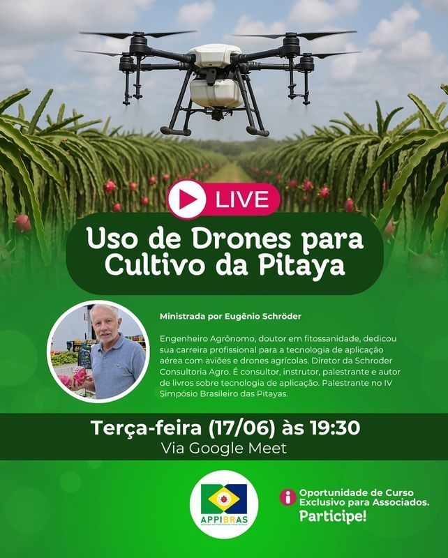 Live imperdível Uso de drones na Pitaya para associados Appibras, dia 17 de junho