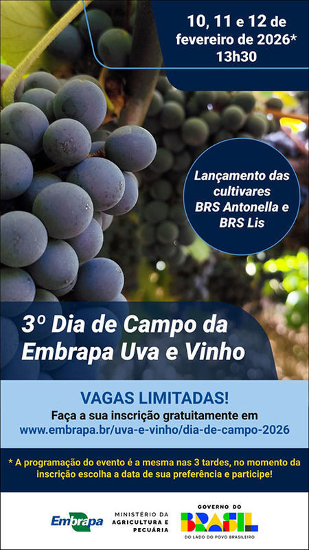 Lançamento - As cultivares BRS Lis e BRS Antonella foram lançadas durante dias de campo que ocorreram de 10 a 12 de fevereiro de 2026, na sede da Embrapa Uva e Vinho, localizada na Rua Livramento, nº 515, Bento Gonçalves (RS).