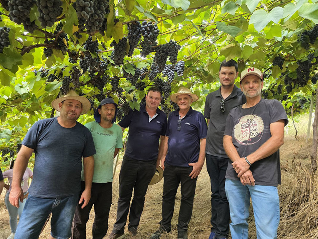 Presidente da Cooperativa Aurora, René Tonello (terceiro da direita para esquerda) e grupo de viticultores validadores - Foto: Viviane Zanella