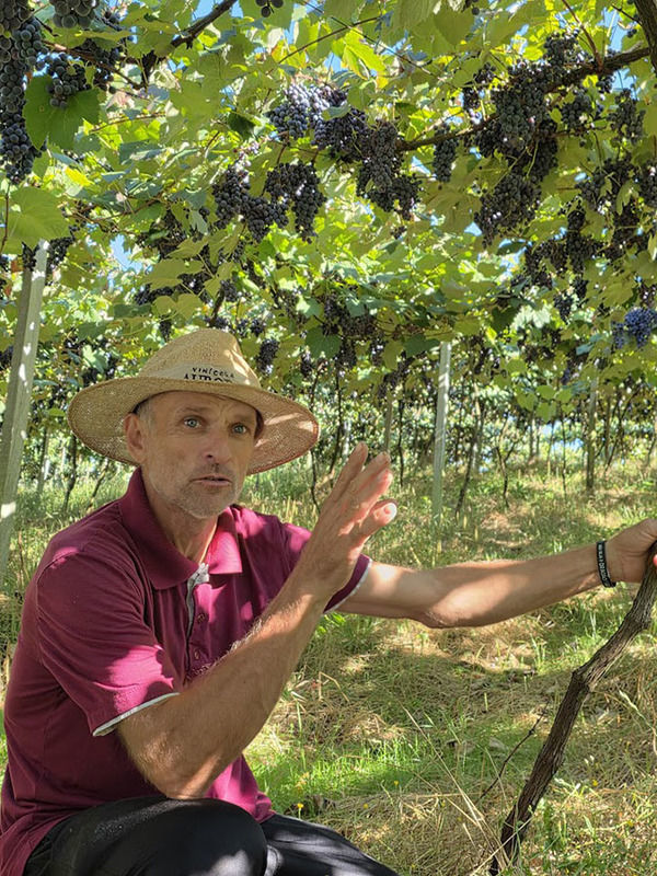 O viticultor Fabiano Orsato (foto à esquerda) foi um dos validadores das duas cultivares. Dos 15 hectares cultivados por sua família, ele já decidiu que em dois substituirá a uva Isabel pelas cultivares BRS Lis e BRS Antonella.