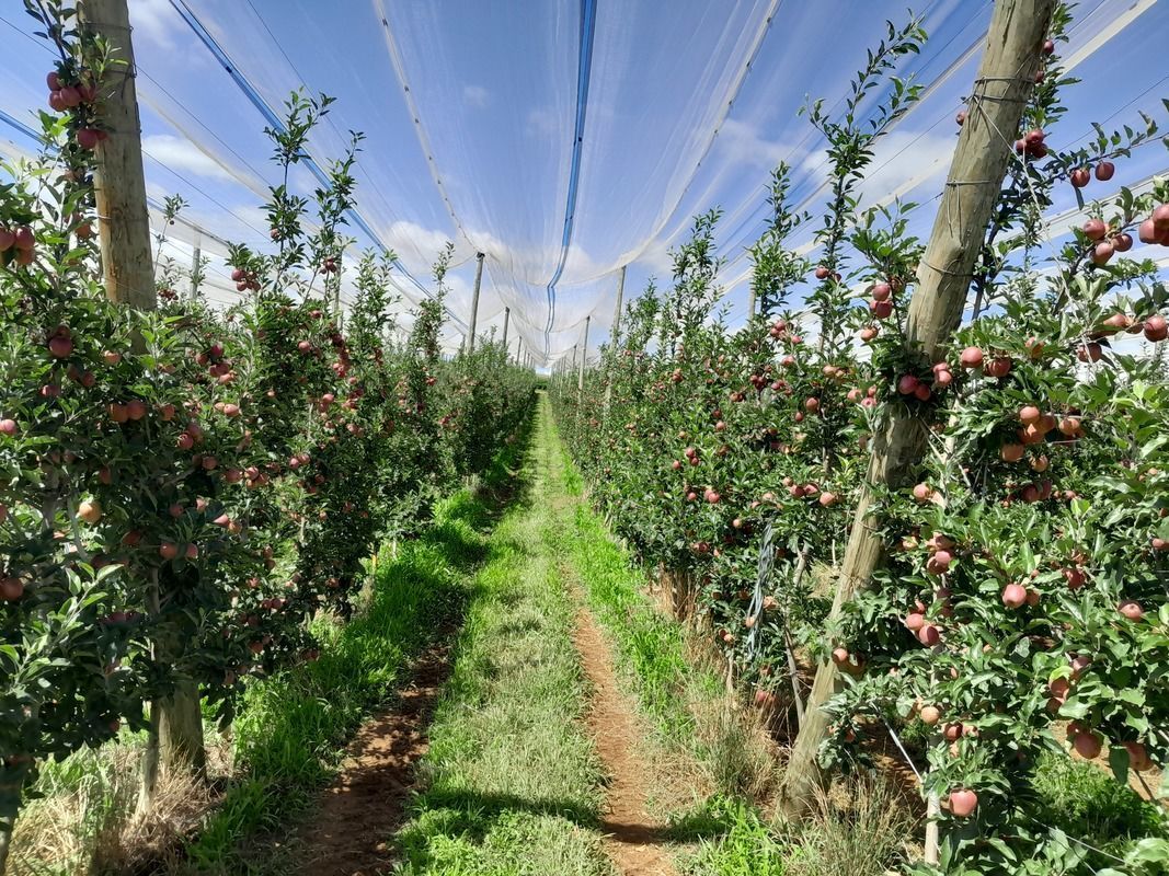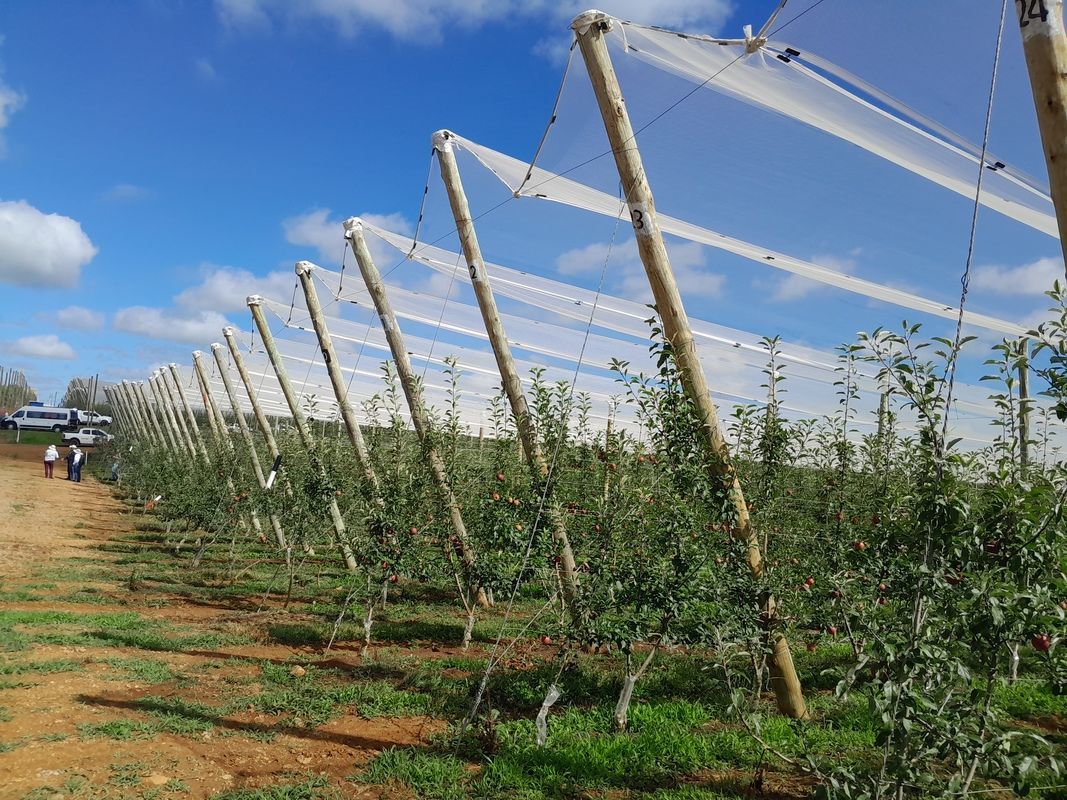 O uso de telas antigranizo nos pomares, não só para proteção das pedras de gelo recorrentes nos últimos anos muito fortes no Sul do país, e sua utilidade na absorção da luminosidade dos pomares, ataque dos pássaros e mosca das frutas em meses de infestação destes insetos.