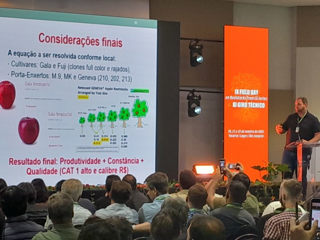 O IX Field Day on Rootstocks from CG Series e o XI Giro Técnico, foi além das expectativas em número de participantes, temas técnicos da pomicultura, apresentação de tecnologias, máquinas e implementos agrícolas (mecanização no campo), irrigação, pulverização-Agricultura 4.0 que agilizam o trabalho dos produtores nos pomares; e sistemas modernos de condução e manejo das plantas, que não só produzam mais, mas também mantenham a "arquitetura" das frutas nas árvores que devem ter uma poda correta no tempo certo, resultando em maçãs de qualidade para o mercado interno e externo.