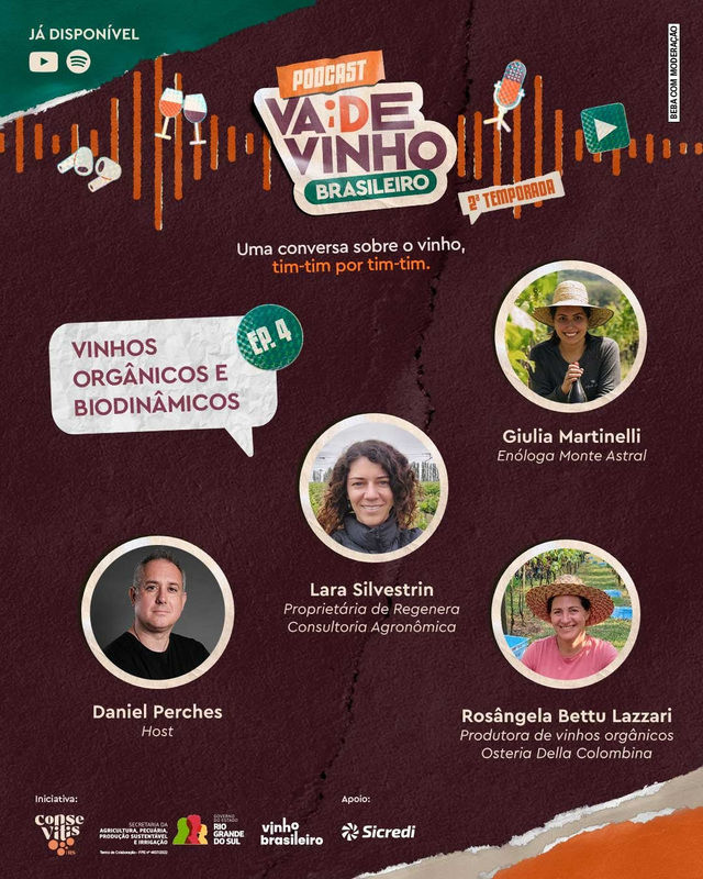 O podcast Vai de Vinho Brasileiro lança, nesta quarta-feira (21), o quarto episódio da segunda temporada, trazendo para o centro do debate um tema cada vez mais presente no mundo do vinho: os vinhos orgânicos e biodinâmicos. O episódio estreia nos canais do Vinho Brasileiro no YouTube e Spotify.