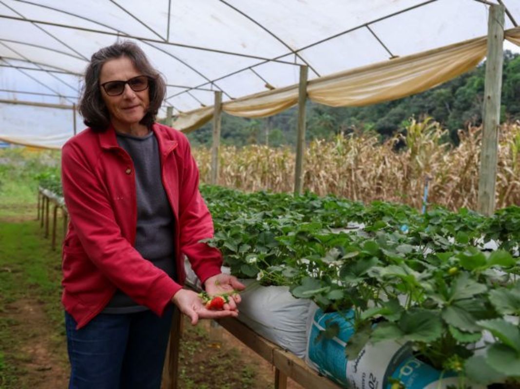 Vilma Fontanive Reichert passou a produzir morangos para complementar aposentadoria e se encantou pela atividade