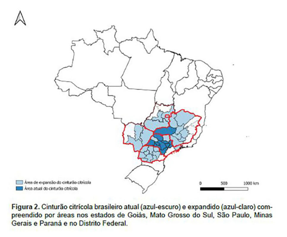 O avanço do huanglongbing (HLB ou greening), pior doença dos cultivos de citros do mundo, está deslocando a cultura no País. O tradicional Cinturão Citrícola (veja, formado por São Paulo (à exceção do litoral), Triângulo Mineiro e sudoeste de Minas Gerais, incorpora novos estados: Mato Grosso do Sul, Goiás, Paraná e Distrito Federal, formando o Cinturão Citrícola Expandido (CCE). Cientistas da Embrapa e do Fundo de Defesa da Citricultura (Fundecitrus) avançam em estudos de zoneamento de riscos climáticos e fitossanitários para auxiliar citricultores brasileiros na migração para uma nova região produtora no Brasil.