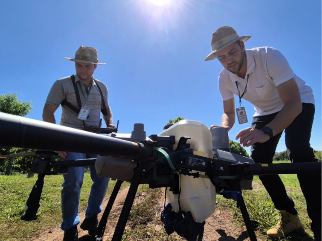 Os pesquisadores trabalham juntamente com parceiros para definir critérios como altura de voo, vazão e mistura de produtos para facilitar a vida dos produtores que precisam de alternativas de pulverização.