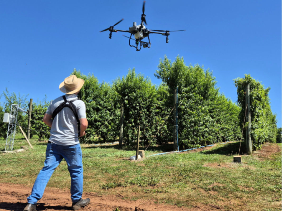 O drone está sendo testado em culturas como pêssego, ameixa, nectarina e também na viticultura