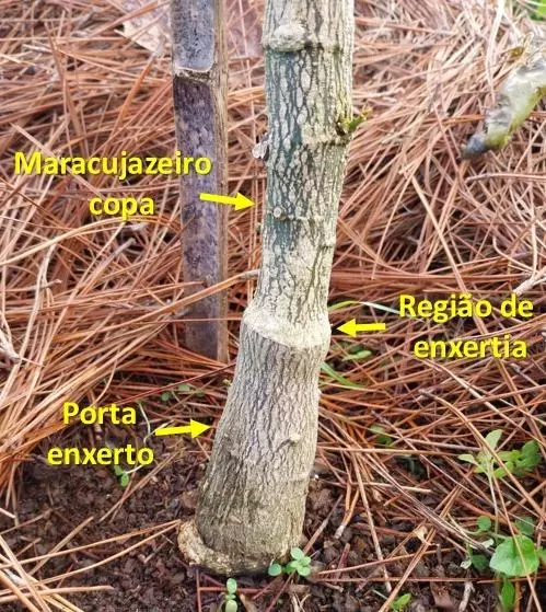O enxerto (cultivar-copa) utilizado é o IPR Luz da Manhã, uma cultivar de maracujazeiro-amarelo do grupo azedo desenvolvida pelo IDR-Paraná e que apresenta boa produtividade e qualidade dos frutos. Porém, como qualquer planta desse grupo, trata-se de um material mais suscetível e melindroso em relação aos fatores externos, tanto é verdade que recentemente a cultura do maracujazeiro azedo tem se tornado anual numa tentativa de mitigar a pressão sob o seu sistema de cultivo.