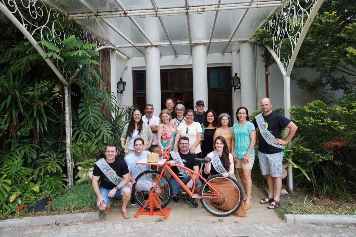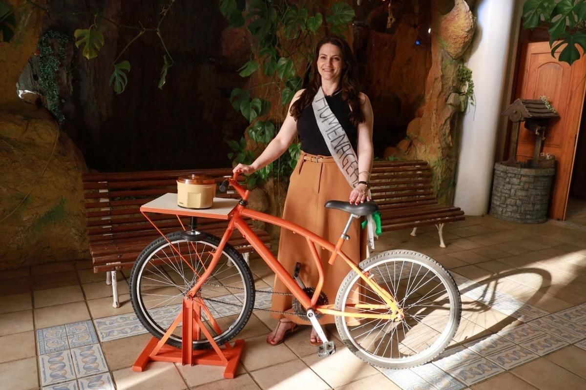 Tecnologia social criada pelos alunos, uma bicicleta adaptada para processar frutas, é uma homenagem para uma professora do curso