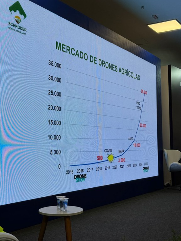 Os dados foram apresentados pelo consultor Eugênio Schroder, durante evento voltado a prestadores de serviços de drones agrícolas na