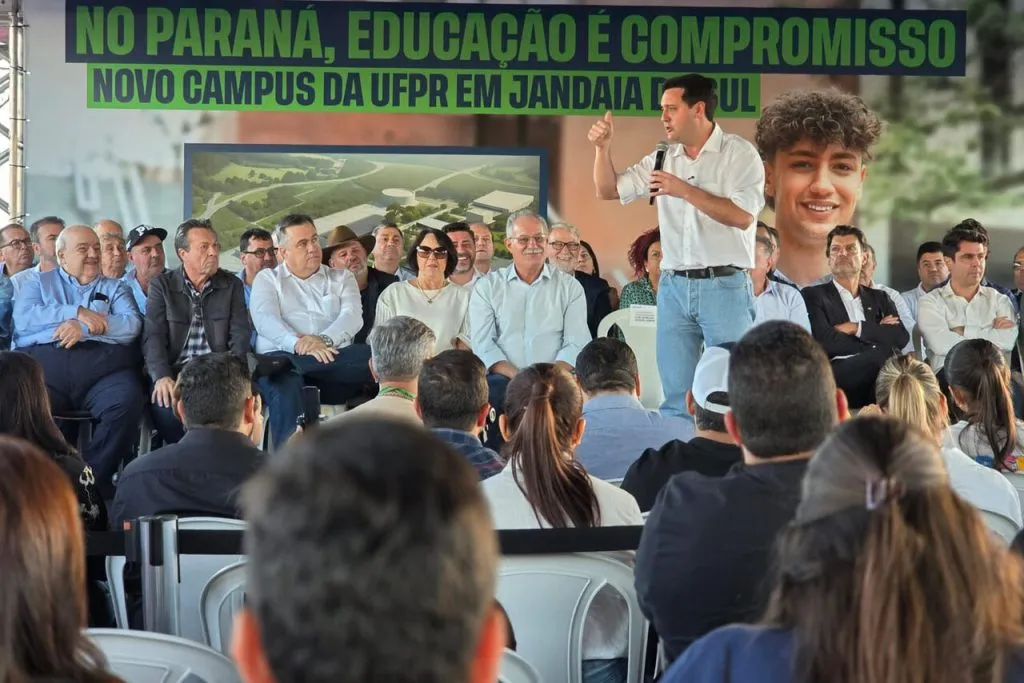 Presenças - Também acompanharam o evento os secretários estaduais João Carlos Ortega (Casa Civil), Guto Silva (Cidades), Márcio Nunes (Agricultura e Abastecimento), Beto Preto (Saúde), Sandro Alex (Infraestrutura e Logística) e Alex Canziani (Inovação e Inteligência Artificial), além do chefe da Casa Militar, coronel Marcos Tordoro; o presidente da Assembleia Legislativa do Paraná, deputado estadual Alexandre Curi; a deputada federal Luísa Canziani; os deputados estaduais Anibelli Neto, Adriano José e Pedro Paulo Bazana; o prefeito de Jandaia do Sul, Benedito José Pupio (Ditão); o reitor da Universidade Federal do Paraná, Marcos Sunye; e o subchefe da Casa Civil, Lúcio Tasso. *(POR AEN) - Foto: Alessandro Vieira/SESA