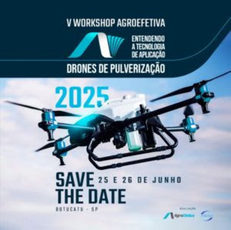 Programação técnica - A programação do V Workshop AgroEfetiva foi elaborada para aprofundar o conhecimento técnico dos participantes no uso eficiente de drones na pulverização agrícola. Entre os assuntos que serão abordados estão formulações e adjuvantes, calibração e faixa de deposição, pontas e acessórios, qualidade de aplicação e riscos de deriva, além de aspectos regulatórios e o papel dos drones nas bulas de defensivos agrícolas. O evento também trará discussões sobre o mercado em expansão, o uso de produtos biológicos e o programa CAS - Drones, voltado à certificação de boas práticas.