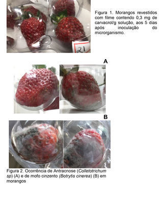 Portanto, nosso grupo de pesquisa testou a utilização de extratos de Aloe vera, Cymbopogon citratus e Zingiber officinalle contra o Colletotrichum sp. e carvacrol incorporado em revestimentos comestíveis à base de uma mistura de amido de mandioca e gelatina. Estudamos esta atividade contra o Colletotrichum sp e Botrytis cinerea fungos deteriorantes importantes do morango. Esta estratégia mostra uma alternativa ao uso de fungicidas que podem deixar resíduos e serem nocivos a saúde.