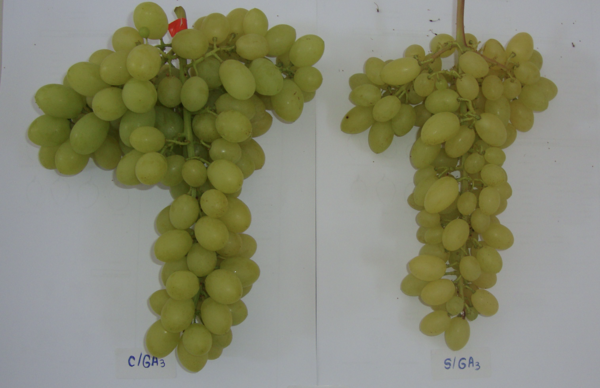 A giberelina é comumente usada na cultura da uva para aumentar o tamanho da baga e melhorar a aparência do acho. Confira mais sobre os efeitos da giberelina nesse artigo Como Aumentar O Tamanho Da Baga Da Uva Aplicando Ácido Giberélico.