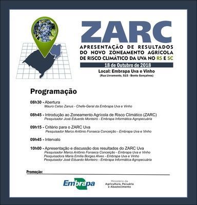 Segundo o coordenador do ZARC Uva, Marco Antônio Fonseca Conceição, pesquisador lotado na Estação Experimental de Viticultura Tropical (Jales) da Embrapa Uva e Vinho, as atualizações propostas para o ZARC Uva visam apresentar critérios técnicos que possam ser empregados nas diferentes regiões vitícolas brasileiras.