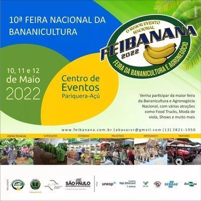 A maior feira de bananicultura nacional está indo para a sua 10ª edição e reunirá diversas empresas no segmento de insumos agrícolas, agro defensivos, produtos tecnológicos, maquinários e veículos. Além de contar com palestra e apresentações voltados ao aperfeiçoamento da cadeia produtiva da banana