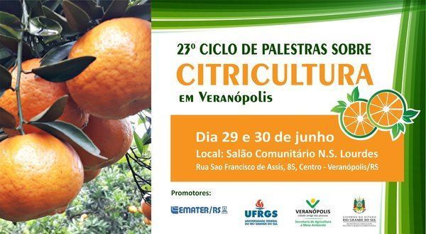 Acontecerá no município de Veranópolis, no final do mês de junho, o 23º Ciclo de Palestras sobre Citricultura.