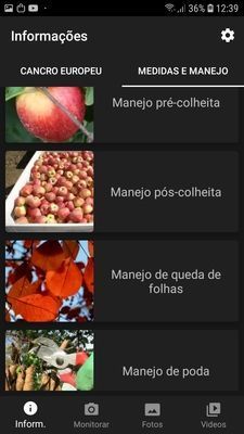 Atualmente uma das possíveis explicações para a rápida disseminação do CEM na serra catarinense é a demora dos fruticultores em identificarem os sintomas da doença nos pomares e rapidamente adotarem as práticas de manejo listadas na IN20. Pensando em melhorar este processo neste aplicativo serão disponibilizados textos explicativos e vídeos, bem como fotos sobre etiologia do fungo, sintomatologia, manejo do CEM e outros. Outra inovação desta tecnologia será o módulo de monitoramento, que permite que o fruticultor faça registros com o celular de possíveis ramos com sintomas do CEM. Através do aplicativo estas fotos serão enviadas para análise dos fitopatologistas da EPAGRI-EESJ. Posteriormente estas imagens serão analisadas e o resultado do diagnóstico poderá ser: positivo, quando é possível identificar, por meio das fotos os sintomas do CEM; negativo, quando é possível descartar o CEM, com base nas imagens enviadas; ou indefinido, quando não é possível concluir o diagnóstico a partir das fotos. Neste caso, o fruticultor receberá uma notificação que deve procurar a Clínica Fitopatológica da EPAGRI-EESJ para realização de mais análises.