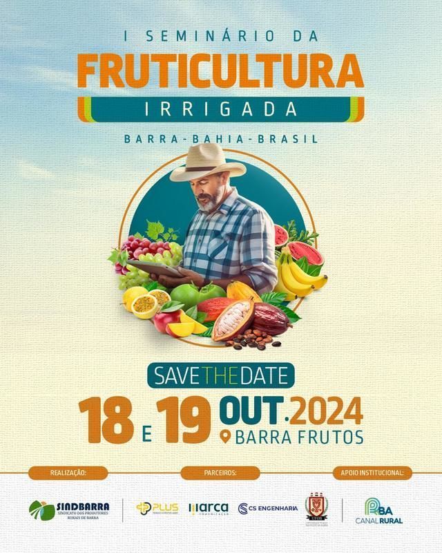 O I Seminário da Fruticultura Irrigada acontecerá nos dias 18 e 19 de outubro deste ano e promete apresentar as "oportunidades e inovações no solo baiano", tema do evento. Barra está localizada no Polo Agroindustrial e Bioenergético do Médio São Francisco, região que vem apresentando grande potencial produtivo resultado de uma localização privilegiada para a logística e abundância de recursos hídricos.