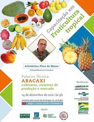 A próxima edição do evento Capacitação em Fruticultura Tropical será realizada na terça-feira (14) e vai tratar das boas práticas agrícolas na produção do abacaxi. A palestra técnica Abacaxi: cultivares, sistemas de produção e mercado ficará a cargo do pesquisador da Embrapa Mandioca e Fruticultura, Aristóteles de Matos. A transmissão será pelo canal da Embrapa no Youtube e pela página da Embrapa Cerrados no Facebook, a partir das 9h.