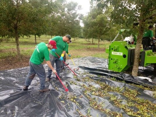 Sobre a colheita em si, Bonine explica que ele pode ser feita com equipamentos como o shaker ou com um sarrafo de forma manual. "Em ambas as formas recomenda-se a colocação de uma lona ou malha no solo, que evita a contaminação", observa. O extensionista destaca ainda a importância se separar as nozes já caídas naturalmente no solo, selecionando manualmente e descartando manualmente os frutos escuros, com bolores aparentes ou com cápsula carnosa aderida. "Também devem ser retiradas folhas, galhos e ramos durante esta etapa", afirma.