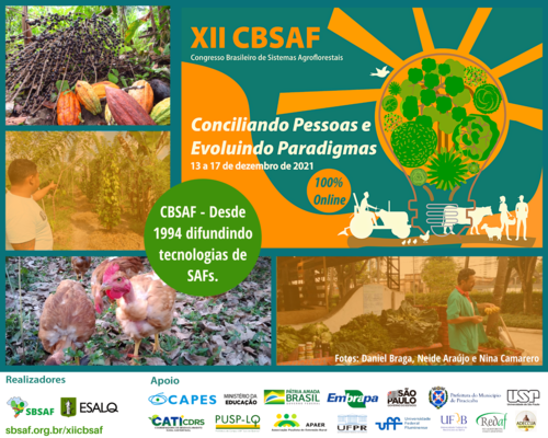 "Conciliando Pessoas e Evoluindo Paradigmas" é o tema central da 12ª edição do Congresso Brasileiro de Sistemas Agroflorestais (XII CBSAF), que será realizado pela primeira vez em formato 100% online, no período de 13 a 17 de dezembro do corrente ano. O CBSAF é promovido pela Sociedade Brasileira de Sistemas Agroflorestais (SBSAF) desde 1994, já tendo realizado 11 edições bianuais, sempre contando com instituições de renome à frente da organização do evento como anfitriãs, tais como: Embrapa, CEPLAC e universidades federais e estaduais de todo o Brasil. Este ano, o Congresso tem como anfitriã a Escola Superior de Agricultura Luiz de Queiroz (Esalq/USP), representando o estado de São Paulo.
