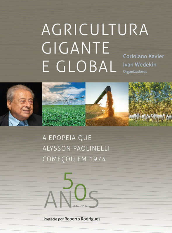 Neste ano, fez 50 anos que Alysson Paolinelli chegou à Esplanada dos Ministérios, em Brasília, depois de uma rica experiência como secretário de Agricultura de Minas Gerais. Sua atuação é considerada como uma transformação que mudou a face da agricultura brasileira. O livro "Agricultura Gigante e Global - A epopeia que Alysson Paolinelli começou em 1974", organizado pelo conselheiro do Conselho Científico Agro Sustentável (CCAS), Coreolano Xavier, em parceria com Ivan Wedekin, Benê Cavechini e Suelen Farias, é uma homenagem ao legado de um dos mais visionários e influentes líderes do setor agropecuário do Brasil. "Alysson Paolinelli, com sua combinação única de vontade política, determinação e conhecimento científico, impulsionou a revolução agrícola tropical sustentável que posicionou o Brasil como um protagonista global na segurança alimentar", disse Coriolano.