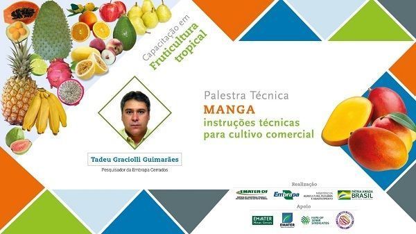Na próxima terça-feira (18), a partir das 9h, a Capacitação em Fruticultura Tropical retoma a programação de palestras técnicas on-line, em 2022, com o tema "Manga: instruções técnicas para cultivo comercial", apresentado pelo pesquisador Tadeu Graciolli, da Embrapa Cerrados (DF). Acompanhe no canal da Embrapa no YouTube, pelo link: https://youtu.be/7T5wra6Uxrk ou na página da Embrapa Cerrados no Facebook (https://www.facebook.com/EmbrapaCerradosOficial).