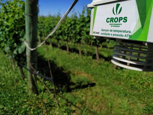 Crops - Sistema de Monitoramento de Doenças - Módulo Míldio da Videira - Desenvolvido numa parceria entre a Embrapa Uva e Vinho e a Jahde Tecnologia, o Crops - Sistema de Monitoramento de Doenças - Módulo Míldio da Videira é um sistema por assinatura que orienta o produtor, através de mensagens matinais diárias, sobre a necessidade ou não de tratamentos com fungicida para o controle do míldio nas cultivares híbridas e americanas. O sistema recebe os dados de uma estação meteorológica instalada na propriedade, a partir da qual as informações são processadas considerando as condições meteorológicas e a suscetibilidade da cultivar de uva e, por mensagem de celular, informa o produtor se ele deve ou não iniciar o tratamento preventivo. Em caso positivo, informa os fungicidas disponíveis indicados para o controle. Os interessados fazem uma assinatura anual, por safra, que inclui a instalação e manutenção da estação meteorológica e o envio dos boletins informativos diários. O sistema foi validado ao longo de três anos junto aos produtores associados da Cooperativa Aurora.