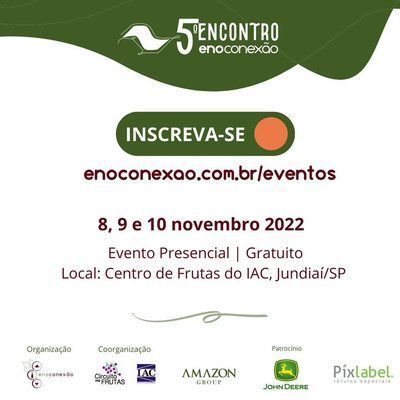 A entrada e participação para o 5º Encontro Enoconexão é gratuita, e a programação técnica acontecerá no Centro de Frutas do IAC, localizado em Jundiaí, nos dias 08, 09 e 10 de novembro, das 14h às 21h. Para efetivar a inscrição acesse o link:? https://www.enoconexao.com.br/eventos/