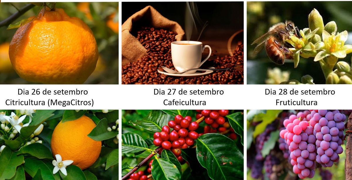Programação - As atividades terão início na quinta-feira, 26 de setembro, com foco na citricultura. As palestras começam às 8h30 com temas como a escolha de mudas e o controle do psilídeo, vetor do Greening. A pesquisadora da EPAMIG Ester Ferreira falará sobre "Novos horizontes para o agronegócio sul-mineiro: citros, café e frutas".