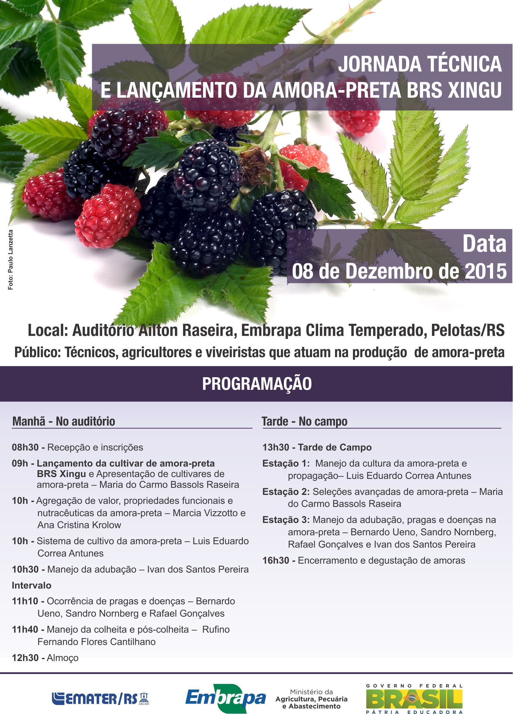 Eventos Evento acontece em Pelotas/RS Na próxima semana pesquisadores, produtores do fruto debatem sua produção Quarta-feira , 02 de Dezembro de 2015 Veja programação no www.embrapa.br/climatemperado