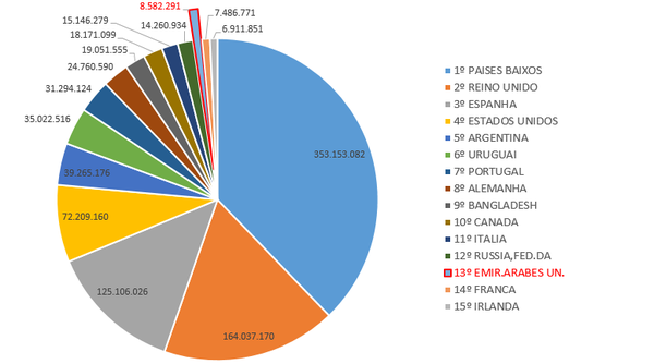 Países do Oriente Médio - Eduardo também fala sobre o potencial de mercado dos países do Oriente Médio, que foram responsáveis pela importação de cerca de 15 mil toneladas de frutas em 2019. Os Emirados Árabes Unidos foram o maior importador dos países árabes, em 2019, se posicionou em 13º lugar de países importadores de frutas brasileiras (número abaixo em toneladas).