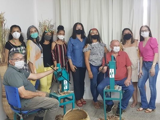 pesquisadores da Embrapa Cocais levaram, no último dia 6 de outubro, protótipos da ferramenta de quebra de coco babaçu à Secretaria de Agricultura Familiar - SAF do Governo do Estado do Maranhão. A máquina foi uma demanda das próprias quebradeiras à Unidade da Embrapa no Maranhão, que buscou parceiros e desenvolveu o protótipo com a participação direta delas e adaptada às suas necessidades. A ferramenta de uso individual para quebra do coco babaçu é uma das finalistas no Prêmio Fundação Banco do Brasil de Tecnologia Social 2021, cuja premiação ocorre este mês. Ela foi selecionada considerando-se a efetividade, inovação, sistematização da tecnologia e a interação com a comunidade.