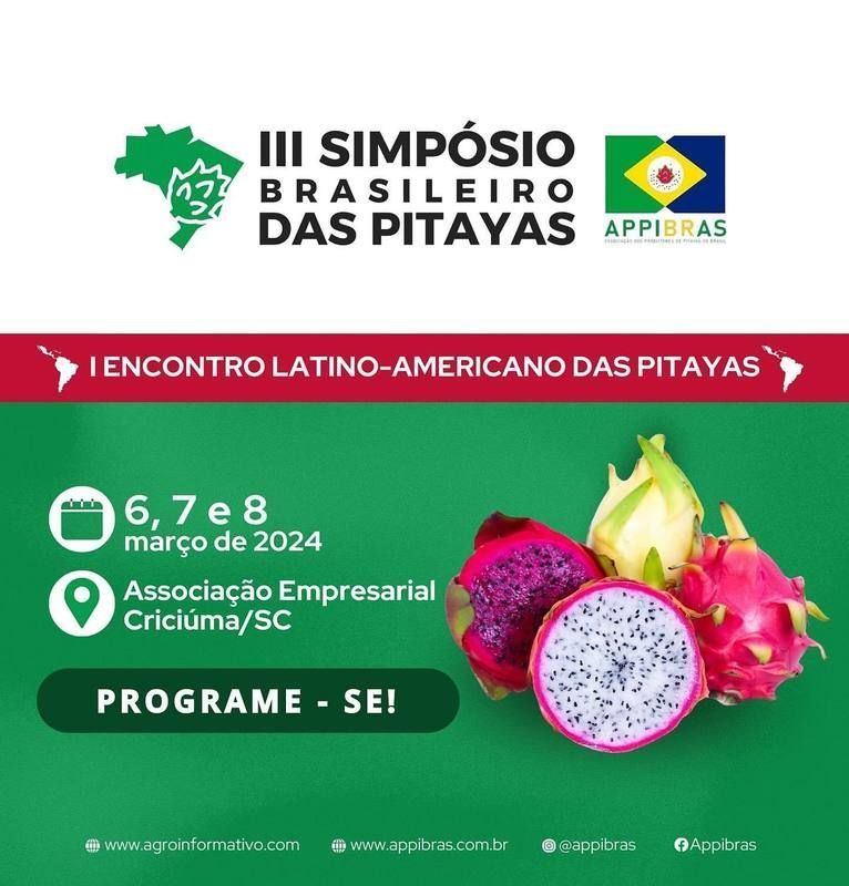 Esse evento tem a realização da APPIBRAS e Co-realização de EPAGRI, tem apoio, patrocínio de várias instituições e empresas. Teremos vários palestrantes do Brasil e exterior, onde será abordado vários temas referente a cadeia da pitaya.