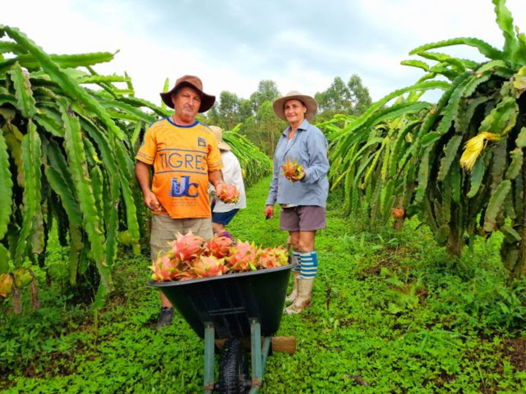 Produção em SC - A produção de pitaia em Santa Catarina vem crescendo exponencialmente nos últimos anos. Na safra 2022/23 o Estado comercializou 2,5 mil toneladas da fruta, crescimento de 40% em comparação com o ciclo agrícola anterior. O movimento econômico foi de R$ 15 milhões.