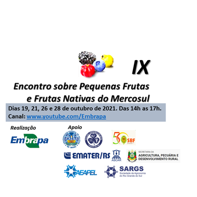 O IX Encontro sobre pequenas frutas e frutas nativas do Mercosul que será realizado pela Embrapa Clima Temperado, Embrapa Uva e Vinho, SBF - Sociedade Brasileira de Fruticultura, UFPel/FAEM/PPGA, Emater/Ascar/RS, SEAPPR - Secretaria da Agricultura, Pecuária e Desenvolvimento Rural do RS, AEAPel - Associação dos Engenheiros Agrônomos de Pelotas e SARGS - Sociedade de Agronomia do Rio Grande do Sul, tem como objetivo divulgar inovações tecnológicas para os sistemas de produção de morango, pequenas frutas e frutas nativas.