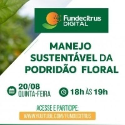 O Fundecitrus vai promover um evento online na próxima quinta-feira (20), a partir das 18h, sobre o manejo sustentável da podridão floral, doença que ocorre quando a florada coincide com períodos chuvosos, o que deve acontecer nas próximas semanas no cinturão citrícola.